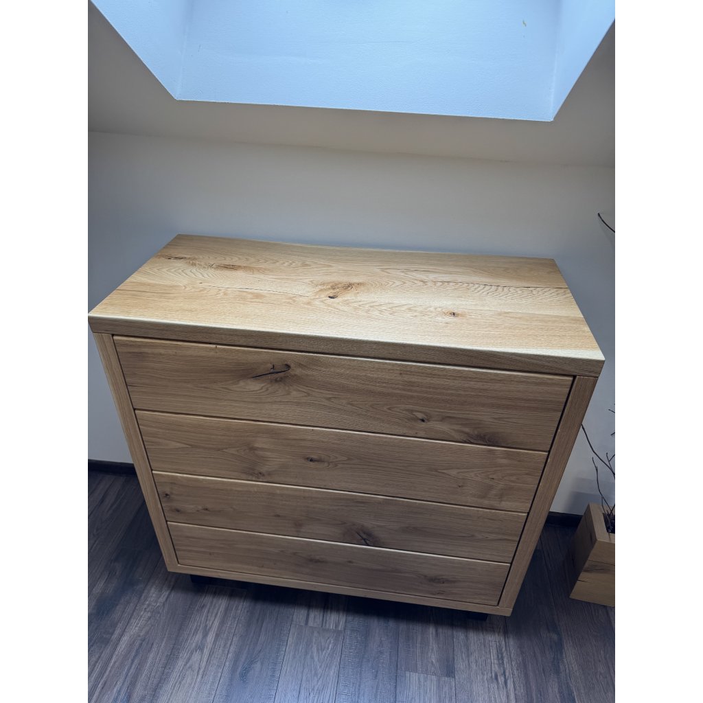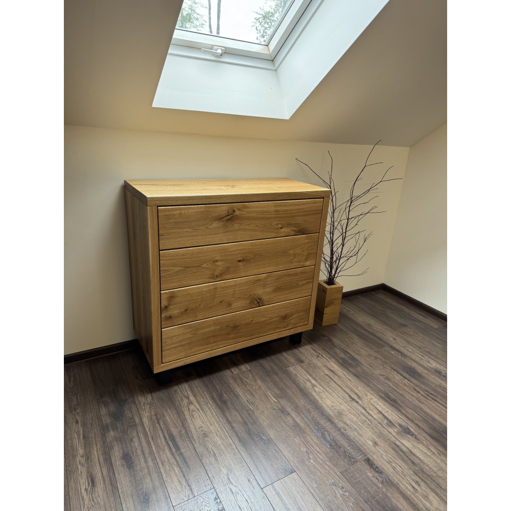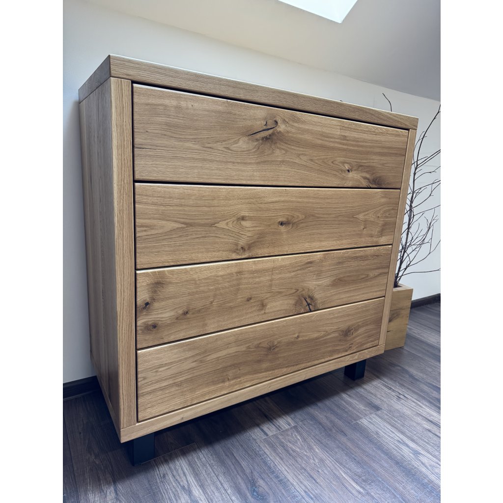 Elegantní komoda z masivního dubu (tloušťka 4 cm) s moderním otevíráním zásuvek na dotyk díky magnetickému systému a samovysouvání.