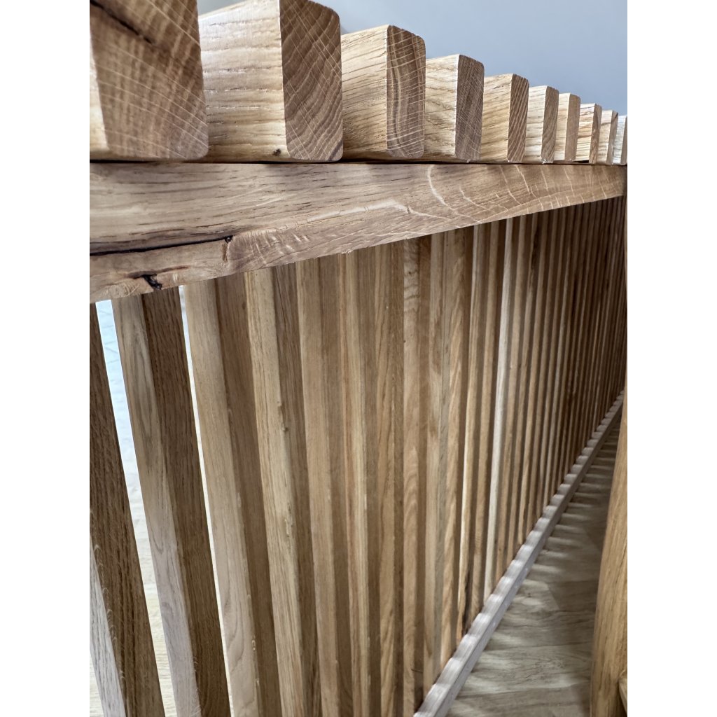 Elegantní a funkční odnímatelný kryt na radiátor z masivního dubu přináší do vašeho interiéru přírodní krásu i praktičnost. Každý kus je pečlivě vyroben z kvalitního dubového dřeva, které vyniká pevností, odolností a jedinečnou kresbou.